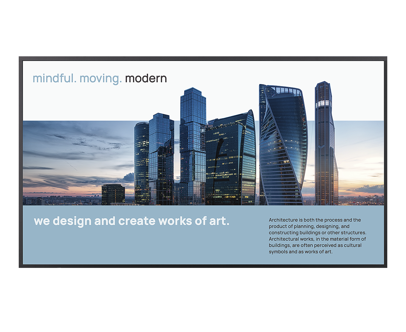 Sharp’s PNHE651 professional LCD monitor features unique high brightness screen and gives you various options to set up your digital signage in the most eye-catching way possible. This 4K Ultra-HD monitor can be installed in a landscape and portrait mode or at 15 º tilted forward or backward angle. The 65" Class (64 1/2" diagonal) PNHE651 display offers a flexible variety of installation options, so you’ll be sure to find the ideal setup to match your location and signage needs. Three HDMI input terminals come standard and the monitor includes a built-in 4K media player to provide digital signage without the need of a separate PC. The system is designed for increased convenience and flexibility as the PNHE651 monitor stylishly makes your key message even more visible to your intended target.