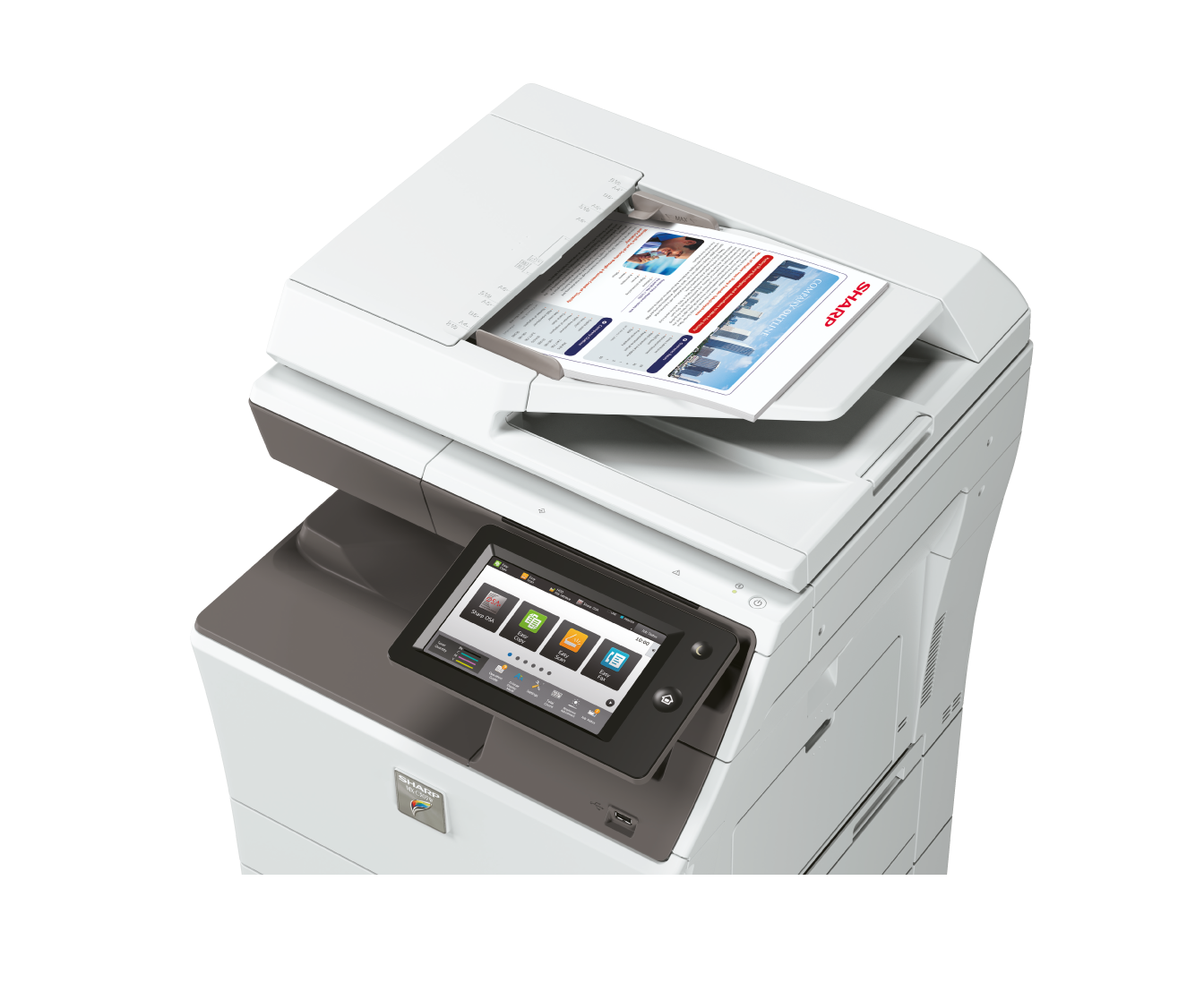 Le module d’alimentation de documents recto verso 100 feuilles sur le MXC304W balaie d’un seul coup les deux faces du document, pour renforcer la productivité tout en protégeant l’intégrité du document original.